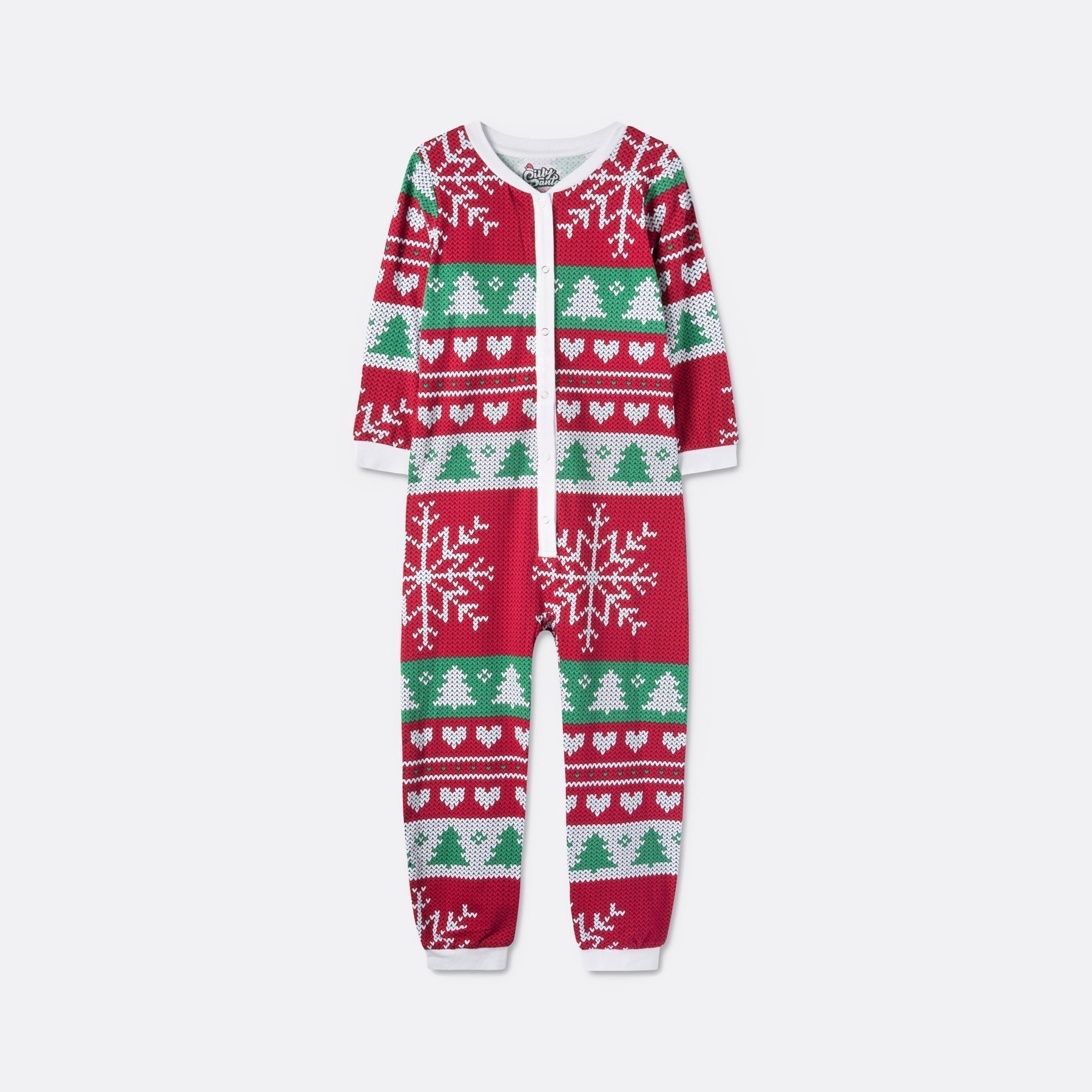 Børn | Strikkemønstret Rød Heldragt Julepyjamas Børn