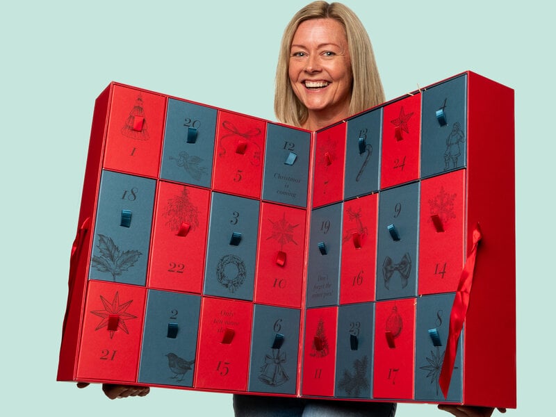 Gør nedtællingen til juleaften virkelig velsmagende med denne gigantiske deluxe-kalender fyldt med lækkerier fra britiske Cartwright & Butler! Nyd søde sager såsom fudge og kager blandet med lækre kiks, luksuriøse marmelader og uimodståelige teer – indholdet i kalenderen har en nettovægt på 4,2 kg!