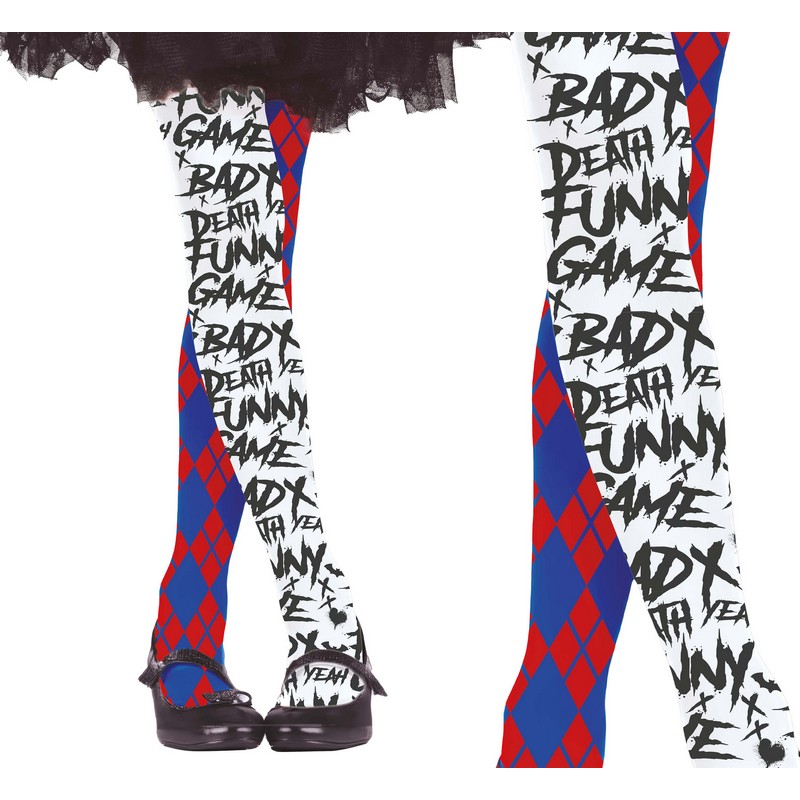 Harlekin Børnestrømpebukser Blå/Rød/Hvid – Strømpebukser