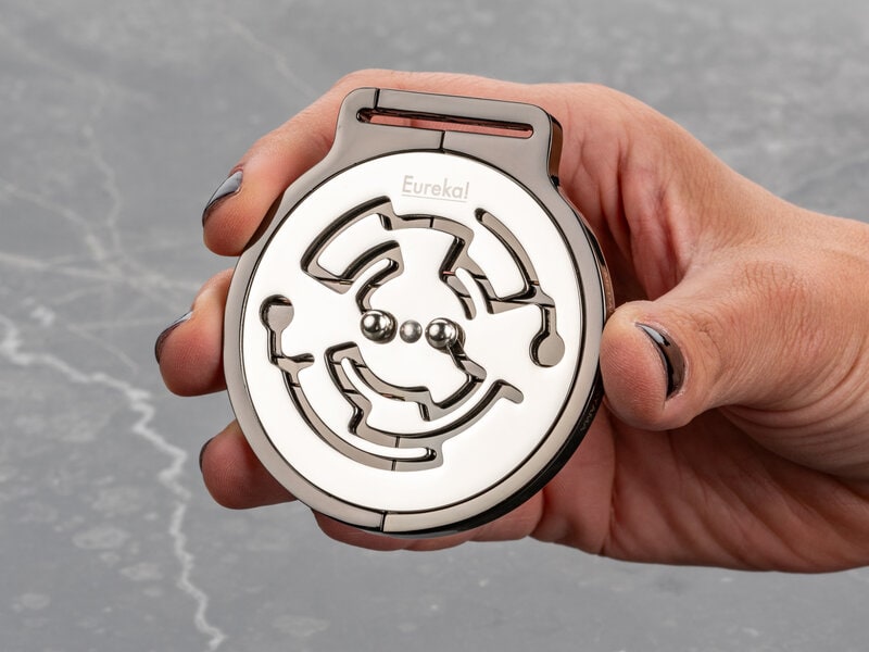 Test din fingerfærdighed og problemløsningsfærdigheder med dette ekstra store Huzzle metalpuslespil! Dette snedige labyrintpuslespil byder på en solid udfordring, hvor du skal dreje, vende og vride det for at finde løsningen.