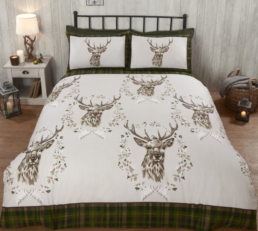 Fang det rustikke look med angus hjort-dynesættet. Med 2 klassiske vinterlooks i ét. Med et all over kronhjort motiv foran. Dette design er skotskternet på bagsiden. Super blødt og hyggeligt børstet bomuld. Dobbelt dynebetræk og 2 pudebetræk Dynebetræk st