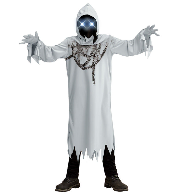 Lænket Spøgelse Børnekostume – Kåbe$Handsker$Maske$2 Stk. AA batterier