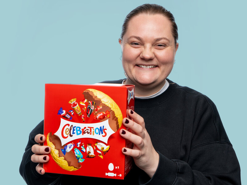 Chokolade + chokolade = ren og skær kærlighed. Dette lækre påskeæg er lavet af mælkechokolade og leveres i en papæske sammen med otte delikate chokoladebidder: Mars, Twix, Snickers, Bounty, Galaxy, Milkyway, Maltesers og Milkyway caramel.