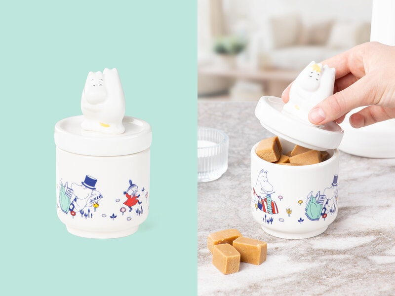 Opbevar dine værdigenstande i denne yndige opbevaringskrukke med Mumi- og snorkfrøkenen, der krammer på låget af krukken.