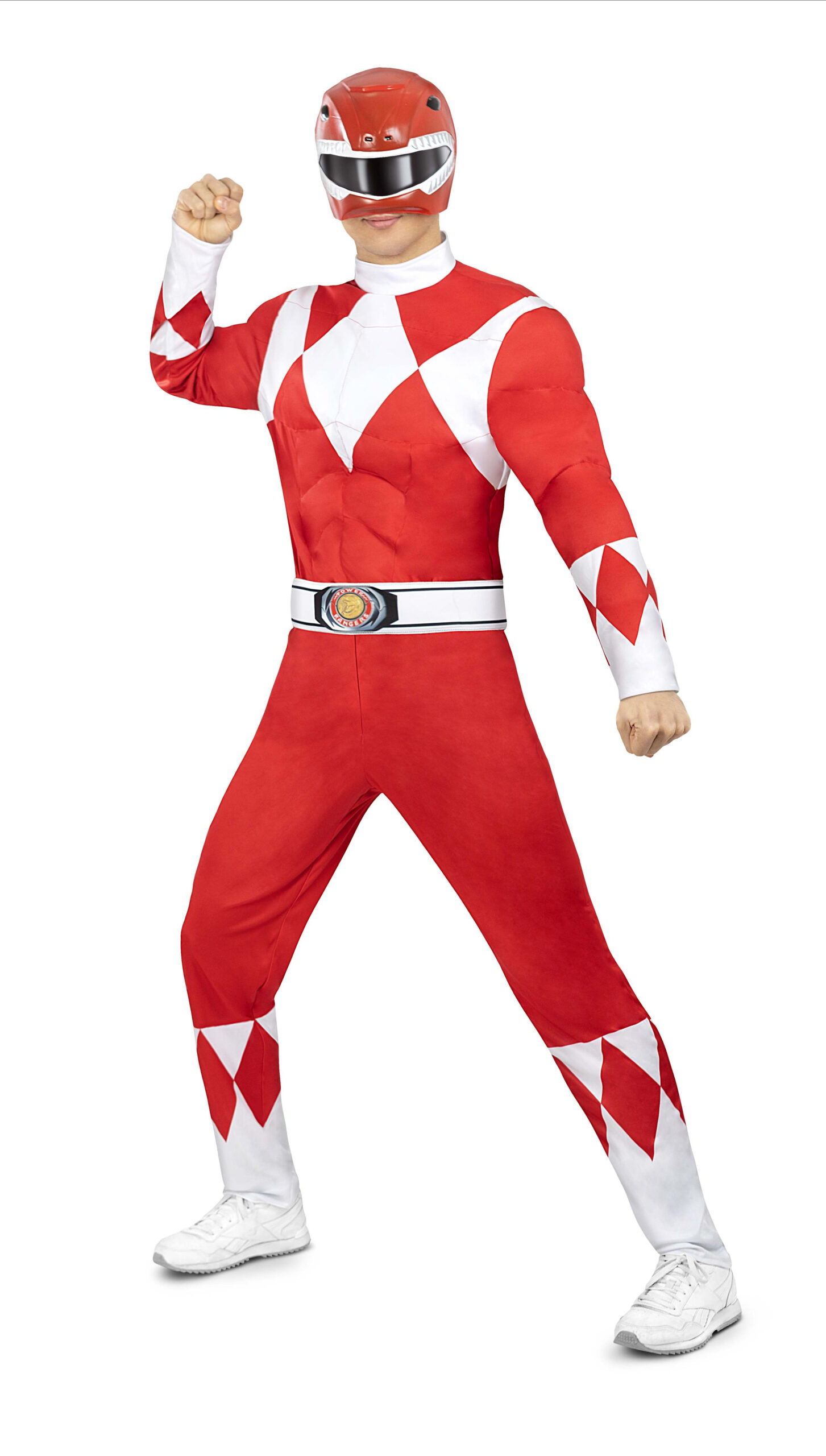 Power Rangers® Kostume Rød – Heldragt$Bælte$Halvmaske