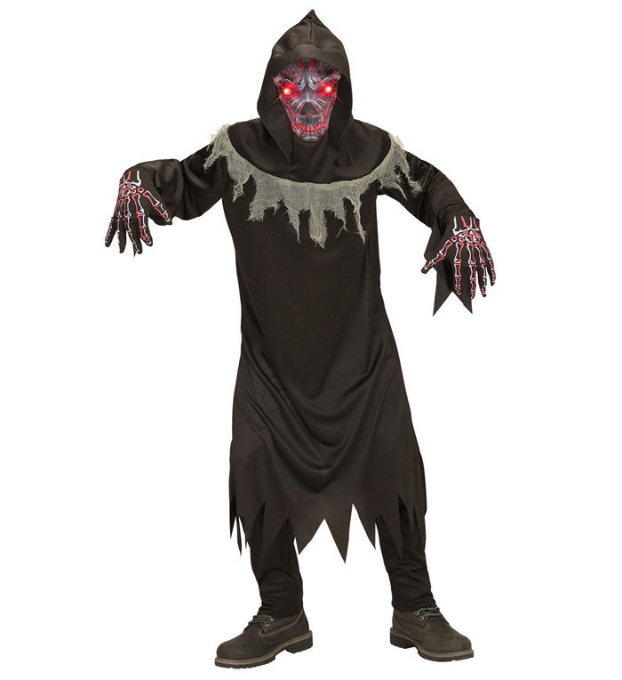 Spøgelses Dæmon Børnekostume – Kåbe$Handsker$Maske$2 Stk. AA batterier