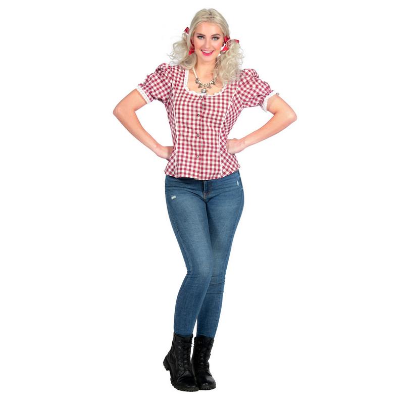 Ternet Tyrolerbluse Rød/Hvid – Bluse