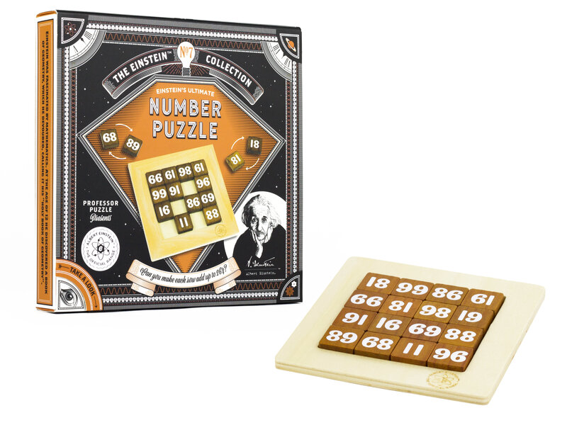 Lad hjernevindingerne udfordre med et virkelig svært træpuslespil! I dette sudoku-lignende puslespil fra Professor Puzzles The Einstein Collection gælder det om at dreje rigtigt og placere seksten brikker med tal, så summen af dem bliver 264 på hver række – kan du løse det?